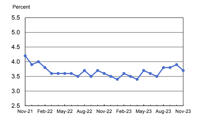 Unemployment Rate, Seasonally Adjusted, November 2021 – November 2023